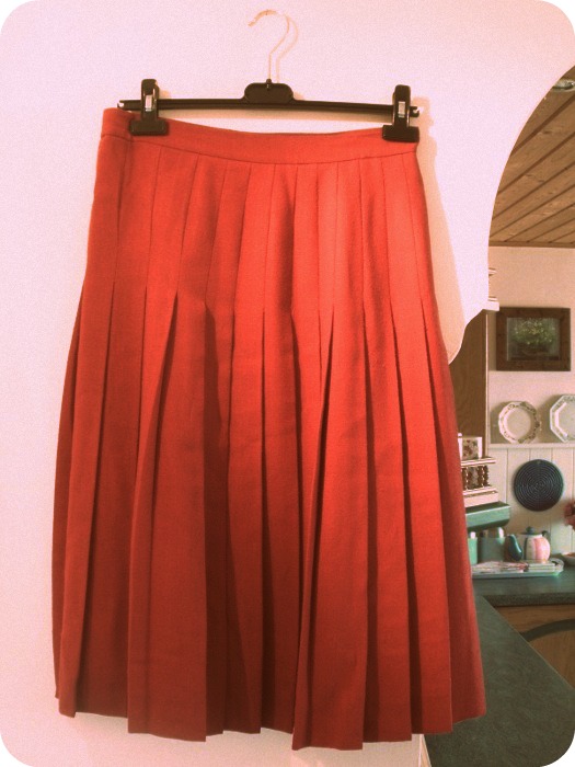 Fleabay came up trumps recently when I managed to land this vintage Aquascutum pleated skirt for a mere five quid. It’s 100% wool, and fits my waist just right – tight enough to suck it in, but not so tight I can’t still manage to sit and eat in it. Sorry for the sour face in the bottom photo – I’m not exactly a natural in front of the camera….