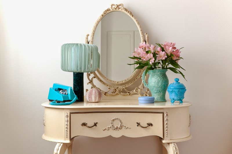 What a lovely room, just full of character and charm. The beautiful dressing table is every girls dream :O)