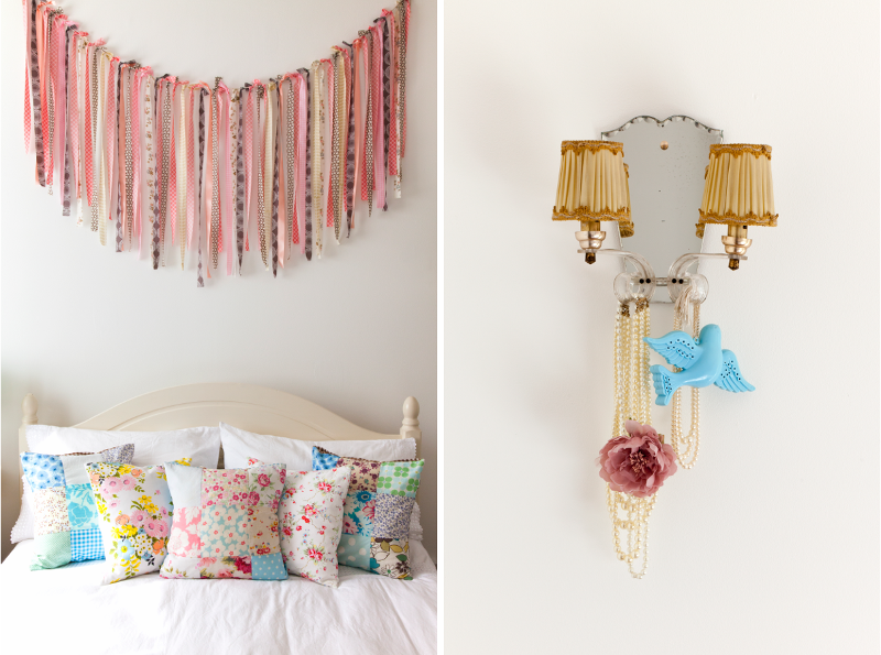 The wall hanging was made by my Mum for my sister’s wedding, and the patchwork cushions were made by my sister – who works as a textile designer – from a mix of vintage fabrics and her own designs. I have a passion for vintage prints, and I guess you could say it runs in the family!