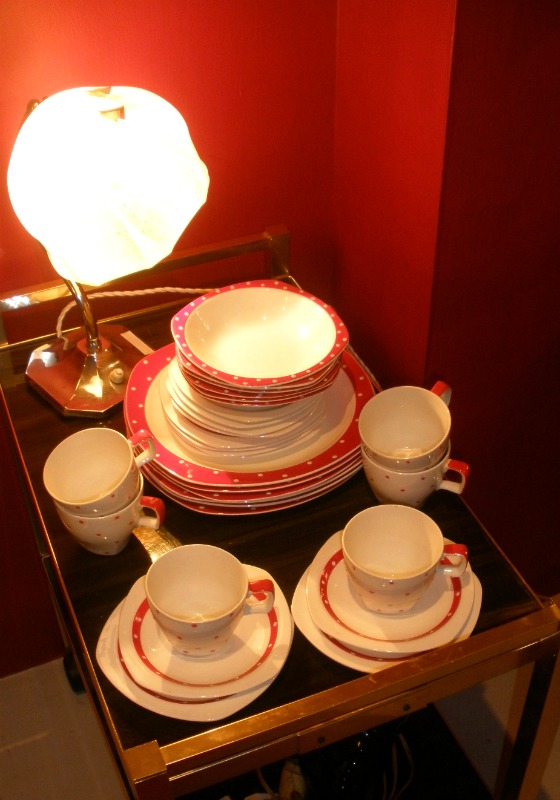 After we’d stuffed ourselves silly with bread products, coffee (me) and pear juice (the Husband), I popped downstairs to use the loo – and discovered even more amazing furniture. And teacups! Oh, the teacups…