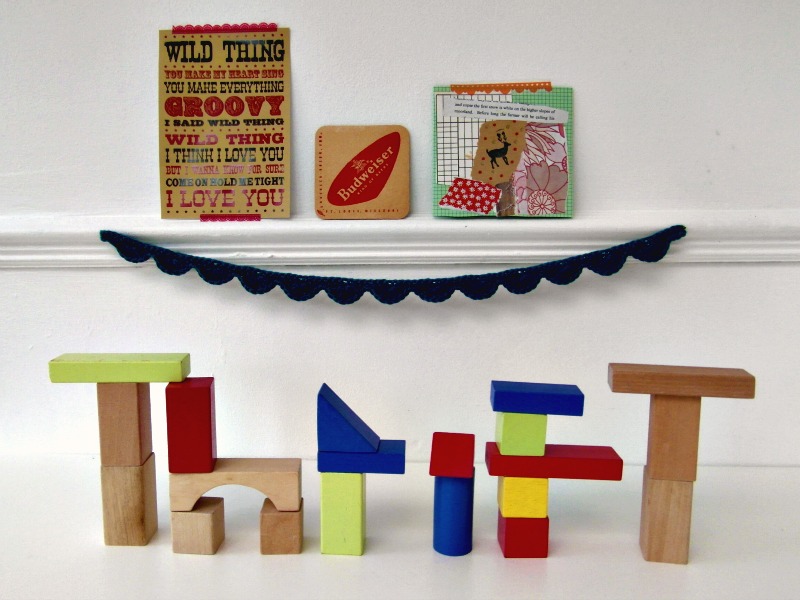 Benjamin is currently obsessed with his wooden blocks. It started when we bought him a game of Jenga, which has actually yet to be used as intended, but has been subjected to numerous bouts of chewing from Daisy and several building sessions from the little man himself. A little while later, we found another box of Jenga in a charity shop, and then last week I found a whole back of shaped wooden blocks in The Salvation Army for the teeny tiny price of £1.49. Over the last four-and-a-half years, we’ve been completely overrun with plastic toys, and I’ve just had enough. From now on, it’s all about books, crafts and wood for gifts.
