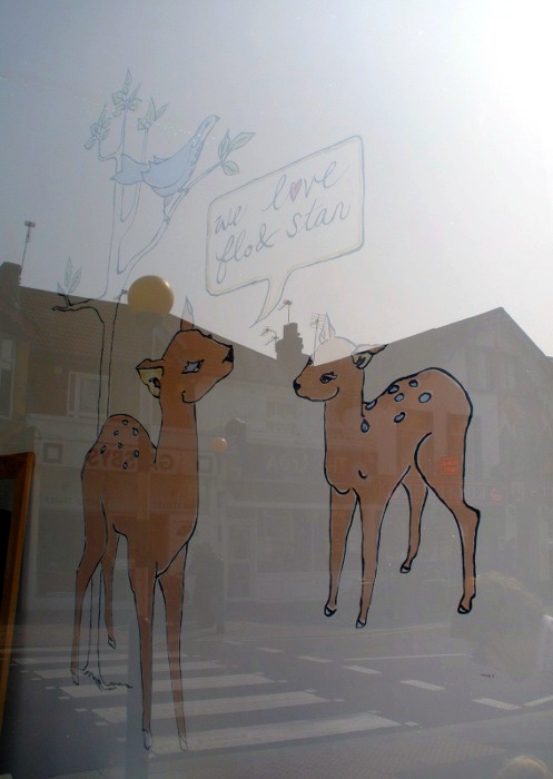 Flo & Stan is owned by a lovely couple, Lorna and Del, who named the shop after her Grandparents, and is the home to so many amazing vintage and handmade goodies, it’s almost criminally good. Cushions and throws jostle for space with cups, vintage teapots and watering cans, and there are stacks of things that you don’t even realise you need in your home until you see them. The artwork dotted around on the walls is all done by Lorna herself, and is really impressive – it has to be said, I’m a sucker for a deer. It was pretty great being there on opening day, and to add to the experience, I was their first card payment customer! (I didn’t take as many pictures as I would have liked – the last thing I wanted was to get in the way of the professional photographers who were covering the opening for the local newspapers – but while on Google Reader today, a new post popped up from Ms. M of Me Old China, who has also been to Flo & Stan recently. You can read her post and see her much better pictures here.) I managed to limit myself to an owl mug for my Mum’s mothers day present, and a colouring book for the Boy – it’s the most imaginative colouring book I’ve ever seen; you have to draw in the faces, hands and feet yourself!