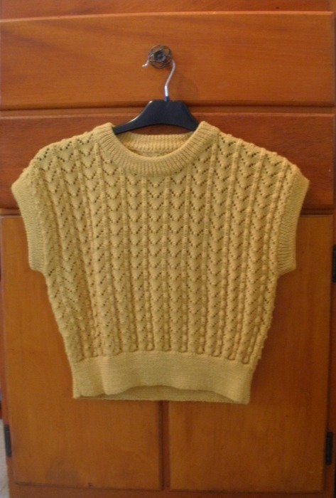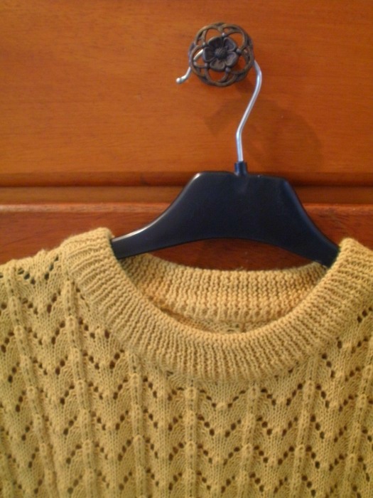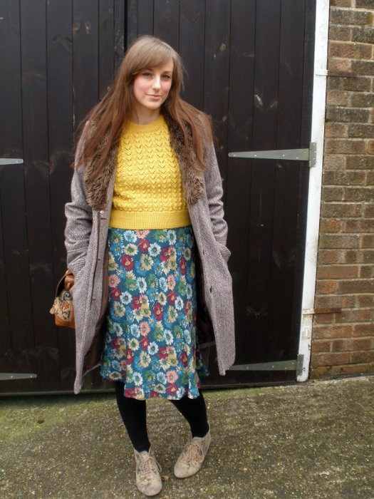 When it comes to clothes, I’m more about the print, the fit and the details rather than insisting everything be vintage or ‘on-trend’ (should I admit that? Maybe not. Oh well…). Oh, and the price point. Being a mother who only works part time, and who has a Husband who is a mere insurance clerk (or something insurance-y), we don’t tend to have a great deal of disposable income leftover for my clothes addiction. Which is why I buy the majority of my clothes from eBay or charity shops, and also why I choke whenever I think about paying more than about £5 for an item of clothing. People have mixed views on charity shops, and I have friends even now who refuse to go in them, and are constantly amused by my bargain hunting and love for ‘old lady clothes’. And I honestly don’t own anything more old-lady-ish than this mustard coloured cropped knit vest that I stumbled across in the British Heart Foundation. For a bargain price of £2.99. It’s yellow, it’s knitted, it has a lacy detail in the stitch. What more could a girl want to put over her tea dress or blouse? Happy days indeed.