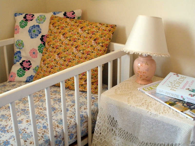 I’m a big fan of attachment-parenting, which is why we’ll have the baby in with us for the first year or so – after that hopefully we’ll be able to move to a three-bedroom place, otherwise she’ll be sharing with her brother. So while we technically have no nursery for her, a corner of our bedroom has been dedicated to looking as calm and pretty as possible – think vintage clothes hanging on the walls, customised tassled vintage lamps, floral pillows (please don’t write me a load of e-mails telling me this isn’t safe – it’s literally for decoration when she’s not actually in there!), hand sewn cot sheets and some pretty pictures on the walls. We don’t have much money, but my main belief is that you don’t need a great deal of cash to make your space your own – you simply need a little imagination and effort.
