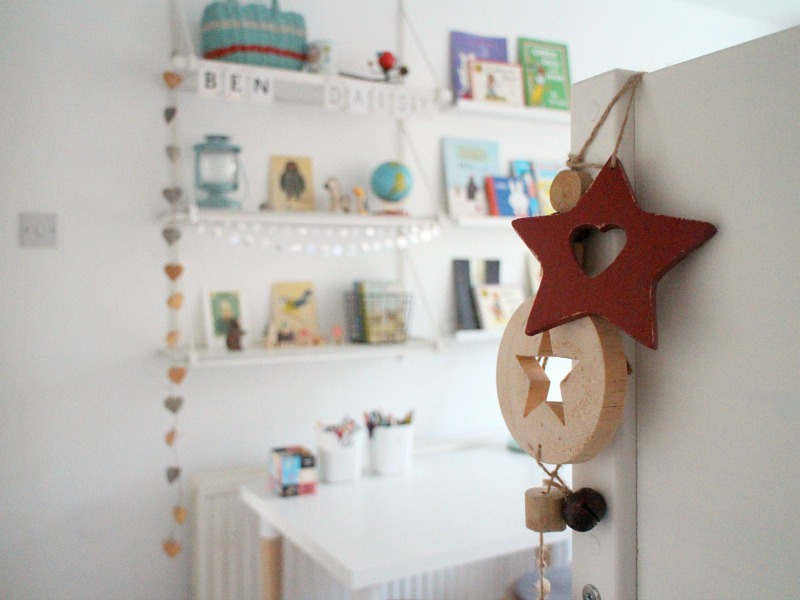 For the first year ever, I decided to festive-up the kiddos room; I made silver circle and star garlands with shaped hole punches and those disposable roasting trays, and strung up a few lengths of fairy lights. My favourites are the ones that go across the window, which my lovely friend gave me for Christmas (she has epically good taste in gifts!) – they’re made up of little wooden shapes, which can be removed, so you can use them all year round. Hurrah! I also made these frosted glass tealight holders from old jam jars and frosting spray – of all the crafts I’ve done this year (and there have been a LOT!), it was probably my favourite and most addictive. Finally, we bought them a miniature Christmas tree from B&Q, whic was decorated partly by them, and mostly by me when they got bored and wandered off. Some people have no Christmas spirit! 😉