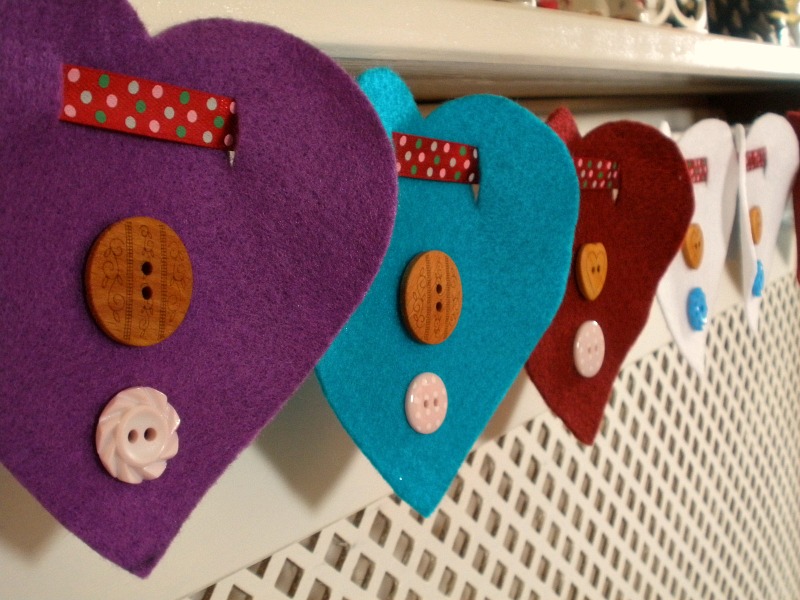 We had most of our decorations from last year – the only thing that was new was the felted heart garland along our makeshift ‘fireplace’ (a radiator cover in the hallway, ahem), and seeing them again was a little like revisiting old friends, punctuated with cries of, “oh, I’d forgotten about those!”