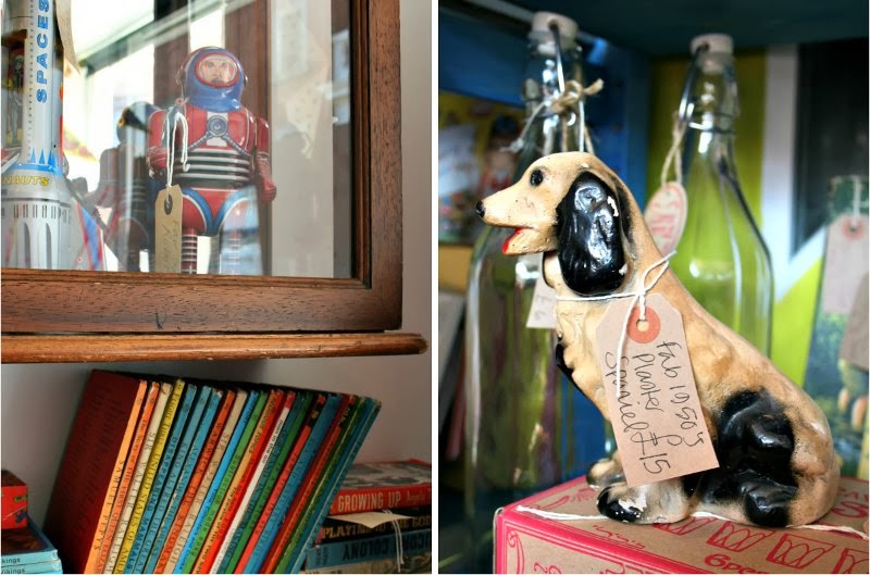 Owned by Lorna and Del, and named after Lorna’s grandparents, Flo and Stan’s is a wonderful jumble of vintage treasures, kitsch homewares and contemporary gifts, all jostling for space on the hand painted shelves. The walls are covered with prints and vintage suitcases, which are used to store books and handmade toys lovingly stitched by local artist Lou (she made Daisy’s favourite doll from some of her newborn babygro’s, ahhhh), and there are even upcycled lampshades displayed on the ceiling.