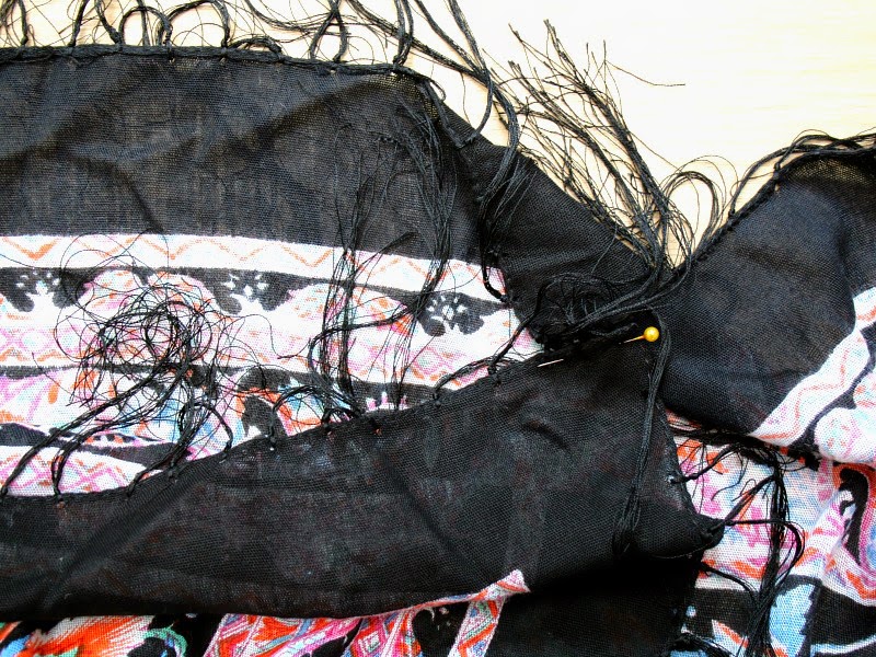 One scarf with fringing (you can find these in the charity shops for pennies – I actually saw this very one in my local Sue Ryder a few weeks back!)
