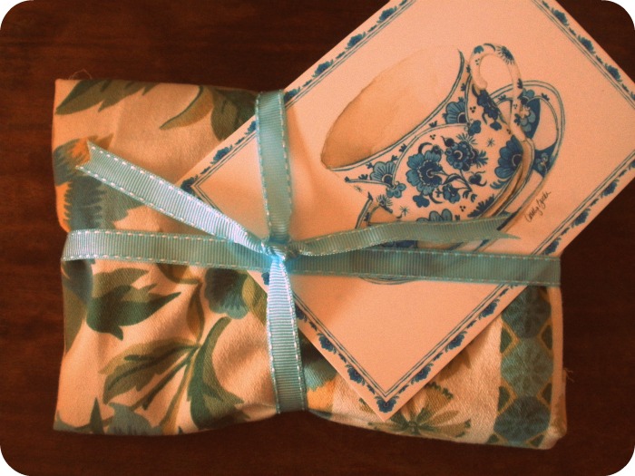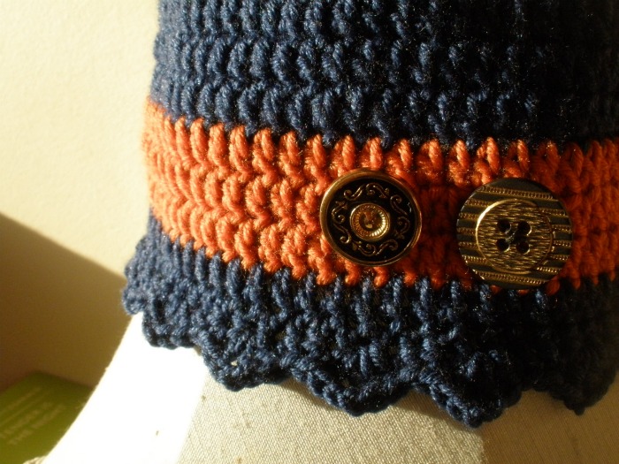 I started with a pink and blue one and sent it off immediately – it was very well received, and she reported back that her friends and neighbours had all asked where she’d got it from. The one in the pictures above was a second one I made when my Mum mentioned to me that my Aunt couldn’t bare to wash the first one, as she didn’t have a spare. I wrapped it up in some old curtain fabric I’d found in a charity shop a few weeks beforehand, tucked a little notecard in with it and posted it off. She was ever so happy, and has since finished her chemo, and three hairs have appeared back on the top of her head. I like to think it’s the healing power of a good crochet hat myself…..