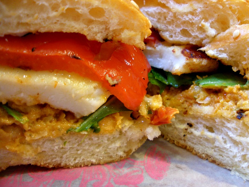 Haloumi with hummous, peppers and rocket. Nom. Nom. Nom. |