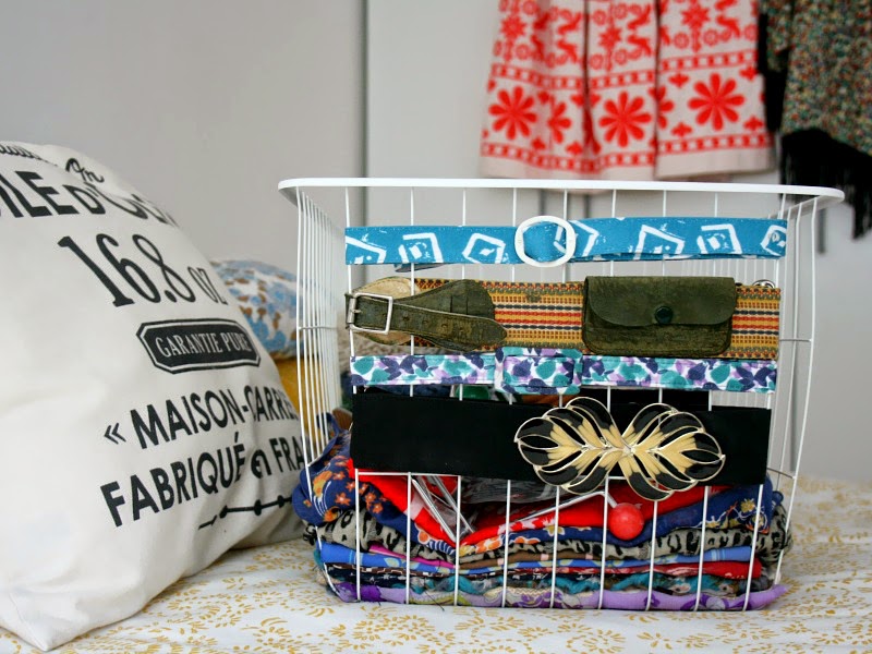 On the top of the wardrobe is a huge suitcase, which is full of the kiddos artwork and other crap beautiful vintage silk dresses and hand-embroidered velvet capes, and some wire baskets from IKEA, I spent literally months trying to find huge wire baskets to store bags and accessories in, but they were either too small or ridiculously expensive – the day I found these, I could have cried with joy. They’re absolutely massive, so they fit everything in easily, and I love how they have gaps in the corners – it meant I could use the front panel to tie my favourite belts around to keep them tidy.