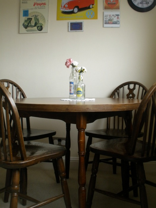 The latest example of her magnificence came about a couple of weeks ago, when we were doing the rounds of the charity shops (I’m collecting vintage and retro clothes and homewares to sell in a coming-soon shop), and I laid eyes on the most amazing dining table and chairs that I’ve ever seen. Solid wood, made in Romania, intricately carved wondrous-ness, for £50 in our local Barnardos furniture shop. I stroked it, and sighed over it, and sat on the chairs for a bit, then admitted defeat (we didn’t have £50 for my dental check-up, let alone a new table and chairs) and got up to leave. My Mum looked at me and said, “do you want it?” I just stared at her for a bit and she laughed and said, “it can be your Easter present. Your other one is in a terrible state!” (We got our horrible, Argos-generic pine table and chairs from a friend for £20 when we moved in together years ago – the table was wobbly and the legs on the chairs tended to pop out randomly, meaning you’re just as likely to end up on your arse on the floor as you are on the chair when you sit down.) I gawped at her for a bit, then did a little dance and ran off to pay. This post is dedicated to my lovely, lovely Mum and my beautiful new table and chairs.