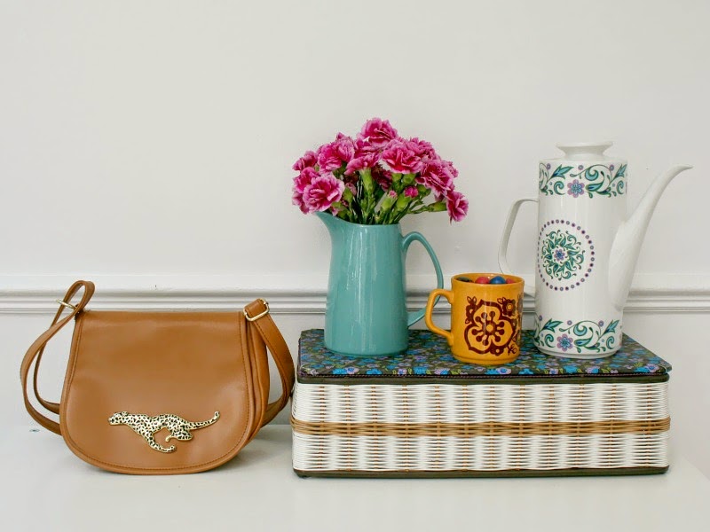 I’ve wanted a round, straw bag since FOREVER, so when I saw this one hanging up in the local Marie Curie, I launched myself at it – I’ve looked at similar versions on various vintage websites and they all come in around the £25 mark, so to find one that was £4.50 made me incredibly happy. (Let’s just gloss over the fact that it was from Primark originally…..) The bag with the leopard on had been hanging up in the nearest branch of Barnardo’s for the last couple of weeks, and every time I walked past I had to look in the other direction in case I got tempted and spent our last few quid on it. When I walked past and saw it still hanging there, swaying gently on the hook, I took it as a sign from the Gods and bought it – I like to think that it was just meant to be.