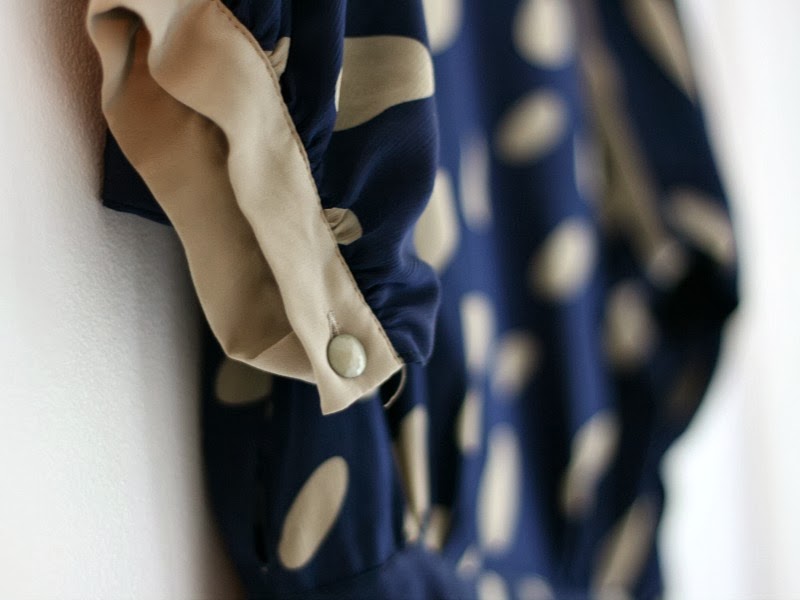 The spotty blouse was an eBay find that I was really pleased with – until it arrived in the post, with a load of holes in the right hand sleeve. I think they’ll be easy to darn, but it’s still irritating that it wasn’t disclosed in the original listing. The seller offered to refund me, but I decided I’d rather have the holes mended than mess about sending it back and waiting to get my money back. I’ve never had any trouble with eBay sellers before, so I’m hoping it was a one-off genuine mistake! Even with its holes, I love the button cuffs and waistband, and the little gathered pleats – it’s a beaut!