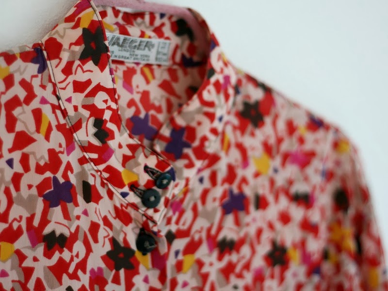 If you follow me on Twitter, you’ll have seen my tweets bemoaning the lack of thrifting opportunities lately; I always check the charity shops regularly, but they just seemed to be full of old Primark stuff and characterless work shirts – not a vintage frock or crocheted blanket in sight. Suffering from a severe case of Thrifters Despair, I was about to give up completely – until I spotted the corner of something floral and suspiciously vintage looking through the window of my local Salvation Army shop. I ran inside in an excited sweat, and came out clutching a vintage Jaegar blouse that cost me the princely sum of £4. It had been a long time coming, but completely worth the wait – and the best thing was, it kicked off a couple of weeks worth of amazing finds.