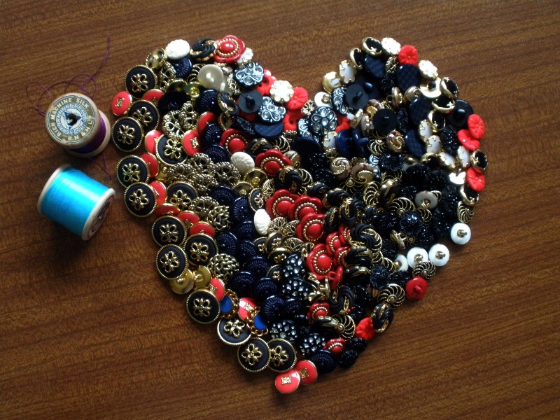 A charity shop in Fareham (those who know it will know that it’s not exactly a renowned shopping destination!) turned up some wonderful finds – vintage sewing patterns, old wooden cotton reels, and the biggest bag of buttons that I’ve ever seen in a second hand shop. The patterns were £1 each, the cotton reels were about the same, and the lady tried to charge me the same again for the huge bag of buttons – but I haggled her up to £2. I felt like I was robbing her!