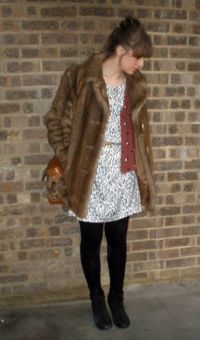 I decided I wanted to wear my little vintage blouse from Dead Man’s Glory as soon as I possibly could after buying it, and was going to put it with a navy skirt and grey cardigan, but when I put it on I noticed that it looked quite nice when it was undone. In the end, I left it open over a Paul Smith dress like a little jacket – I love that the dress sleeves are slightly longer than the blouse’s.
