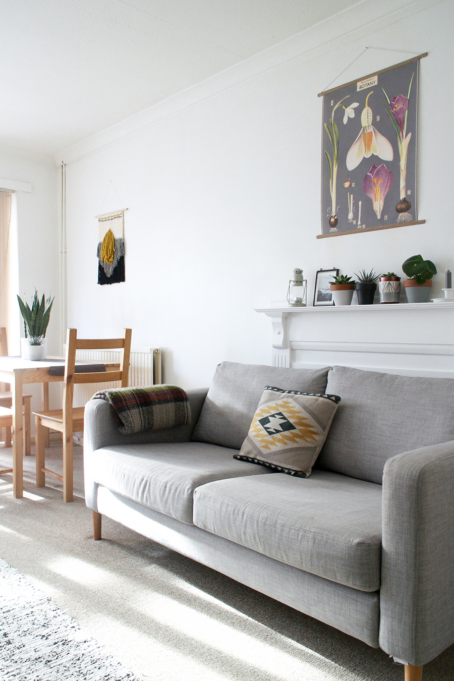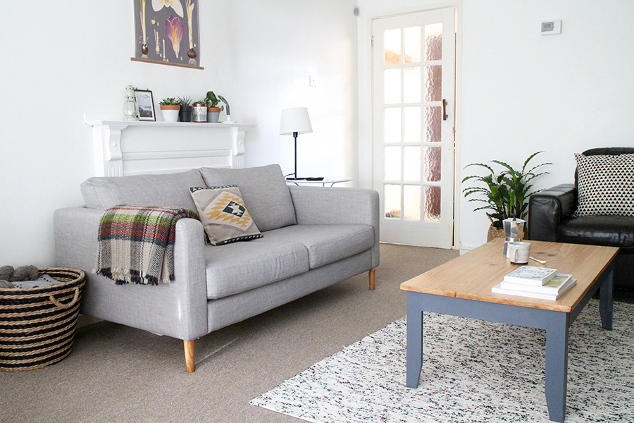 Until the last couple of years, my interior style used to be ‘more-is-more’. More patterns, more fabrics, more pictures, more lamps, more stuff – if you want to see our lounge from our previous flat, click here (seriously, those pictures make me twitch every time I look at them. So. Many. Things.) and from August last year in our current house, click here (still so much stuff!) I’ve done so many decluttering sessions, I’ve lost count – I’ve finally got to the point where I don’t walk into the room and feel like my things are trying to suffocate me though, so I reckon we’re done!