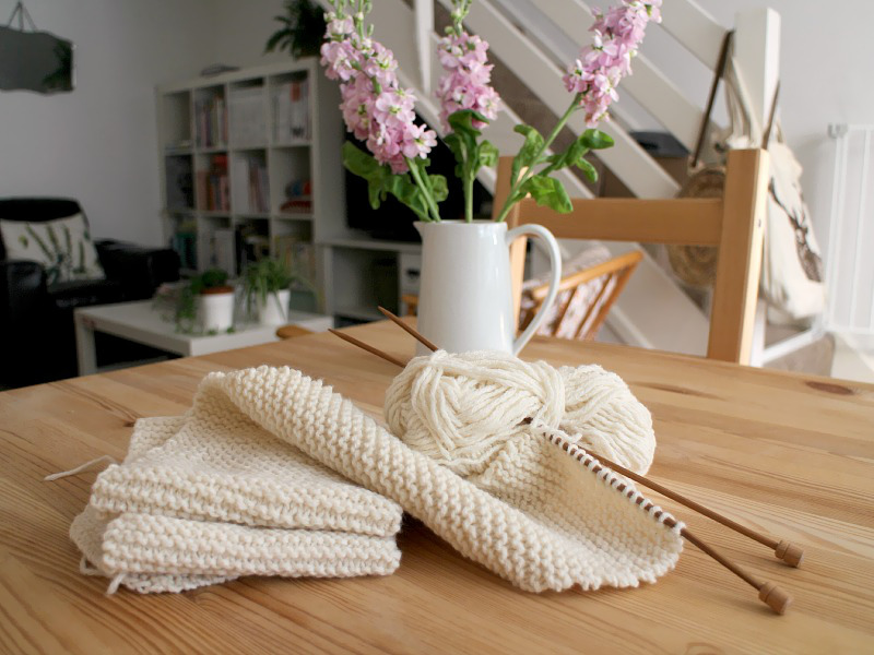 A pretty month! I am getting ridiculously excited about all the flowers too. I'm admiring your pot stands too – and the knitting!