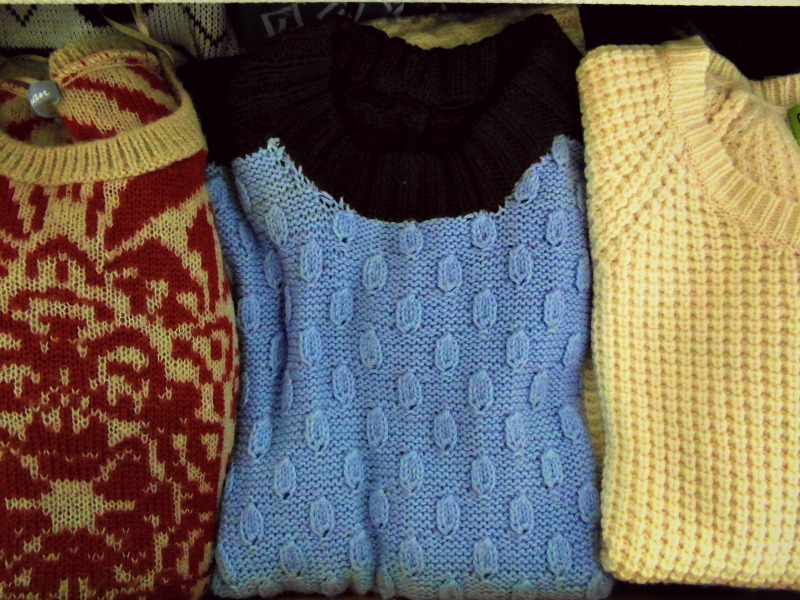 I started my adventure in clothes by digging out an old favourite knitted vest, popping it over a new dress, and then topping the whole lot off with an aztec cardi from eBay.