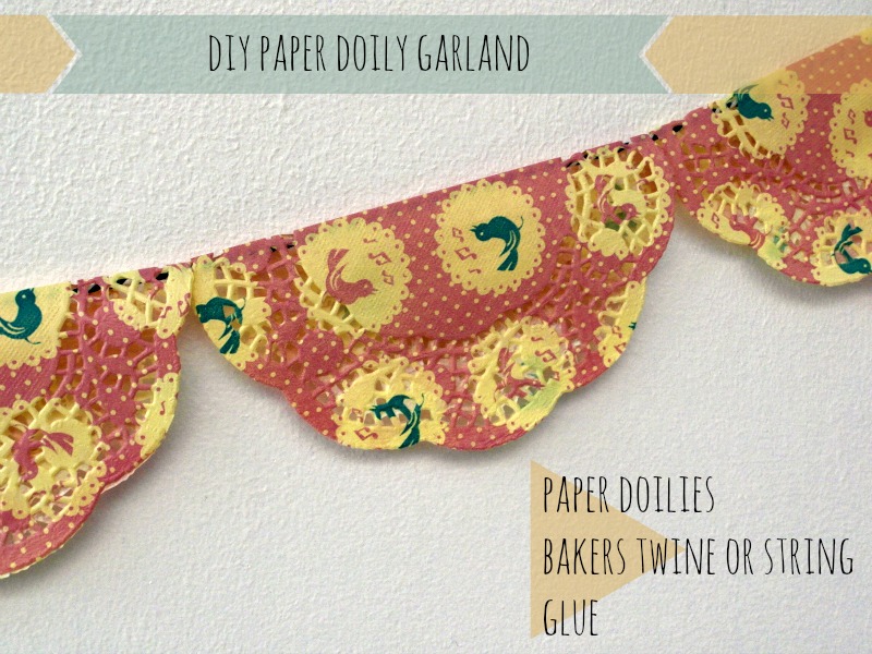 You could use any doilies really, plain or patterned, and you can find a gazillion of the little blighters on eBay (look at these ones! Look at those colours!). To string them up, I used bakers twine from Papermash, but if you don’t have any, crochet cotton would work just as well – I just prefer the look of bakers twine. Apart from that, you need some glue – I used spray mount, because it was at the front of the cupboard, and it’s quick, but any kind of glue would work.