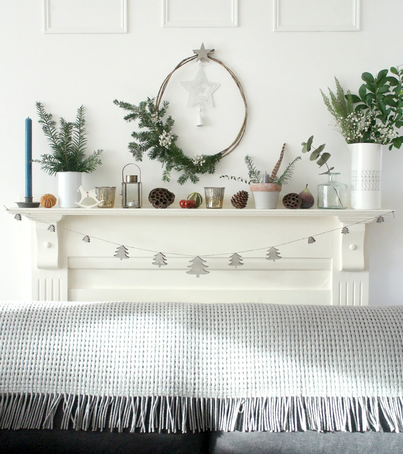 My mantle is my favourite place to style in the house (despite those stupid empty frames that the last tenants glued to the wall, fools), and it doesn’t vary all that much throughout the year. Lots of vintage pots, plenty of nature and usually some sort of garland. For the festive season, I added dried fruits, seed heads and another wreath – I hung the lovely Scandi-style ornament from Houseology in the middle of this one, because I thought it looked a bit sad and empty. I also added in the wooden rocking horse ornament (would have been wasted on the tree!), a miniature lantern style tealight holder, and a beautiful geometric jug. I’ve got to be honest, I think this is my favourite Styling the Seasons post I’ve done so far – but then everyone likes a bit of Christmas, don’t they?!