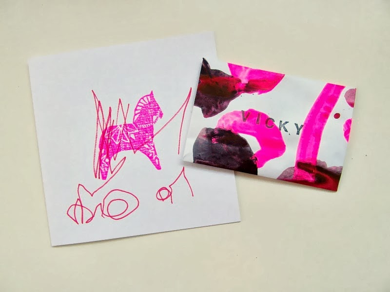 The necklace came in an envelope decorated in pink neon by Elfie, Davina’s amazing daughter, and there was also a lovely handmade card stamped with a dala horse motif (which has been swiftly displayed in my little craft area with my other favourite prints, cards and nick-nacks). We’re thinking about organising a larger craft swap as we enjoyed this one so much, so watch this space!