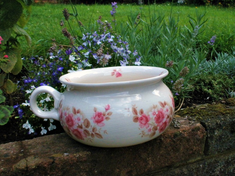 Yes, that is a chamberpot – basically, an old ceramic lav. I’ve got grand plans for the Spring (I’m thinking ahead – totally not a Winter person…), which include a marvelous display of flowers and shrubs planted in these little beauties. Look at the flowers! It fits right in with my hippy-natural-eco-self-sufficient style garden perfectly. Can. Not. Wait.