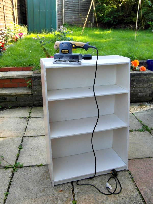 On a thrifting trip last year, I stumbled across an old, tired set of shelves – at the time we were looking for something to make into a toy shop or market stall for Benjamin, which for various reasons didn’t quite work out the way we planned. I ended up with them stuck in the conservatory, in their sorry state, and spent quite a long time considering sending them to a furniture charity shop just to be shot of them.