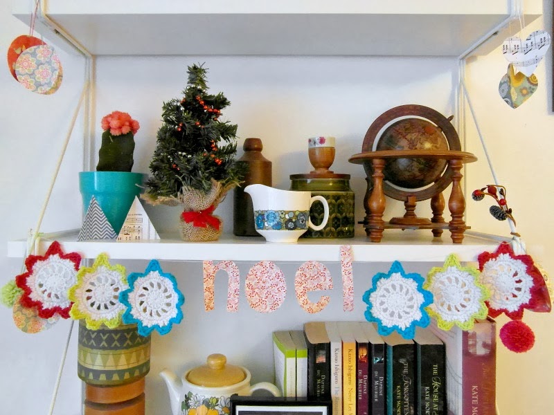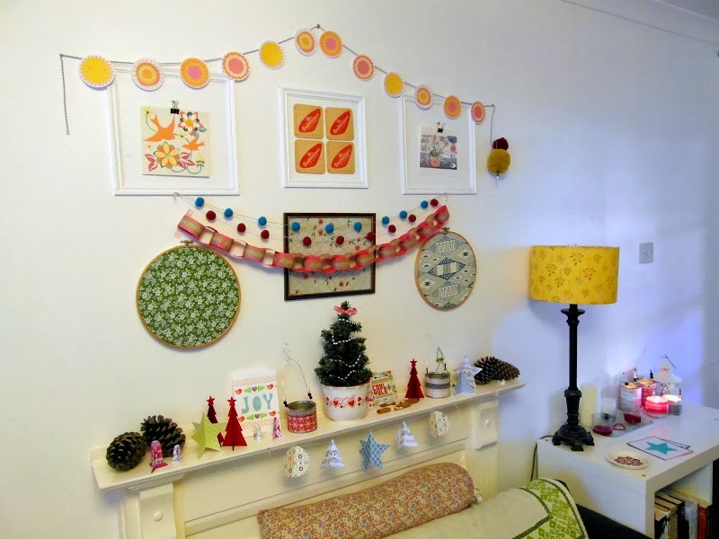 That was pretty much it – there were a few other ideas I had, involving leaves, giant sticks, mod podge, fabric scraps and various other materials, but they either went terribly wrong or I just didn’t have time to carry them out. Next year! The house still looked pretty festive, and I was pleased with how bright and cheery it was – I made some paper pompoms, which are ridiculously easy and addictive, and I can’t see them coming down any time soon….