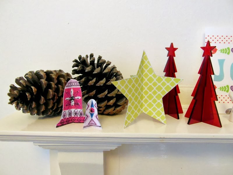 As well as basic shapes, I also downloaded some retro wrapping paper with old-style baubles on it, printed it off three times and made each bauble into a 3D model – they look delightfully kitsch standing on our mantle. They’re so simple to do – I made mine in front of the exciting end of series 2 of Homeland (have you seen it? If not, you are missing OUT!), and could have happily carried on into the night, had it not been for the fact that I ran out of paper. And TV.