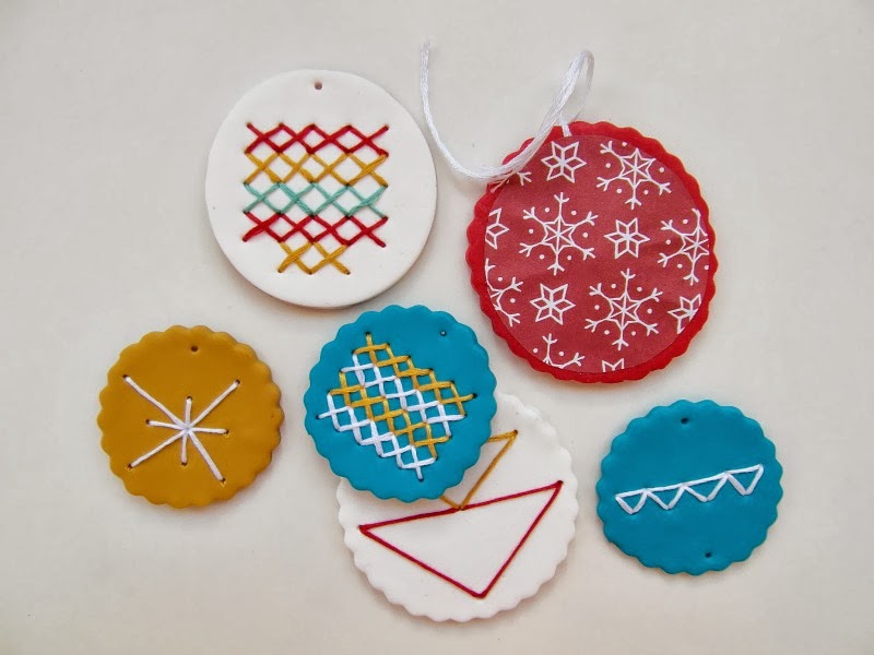 When I was thinking about wrapping the presents this year, I decided I wanted to forget the usual paper gift tags that go out with the recycling, and give something a bit nicer that could be kept. Less waste, and a nice extra little something for the giftee (is that even a word? It is now!) to keep and hang on their tree next year – what could be better than that? I thought about going down the usual route of salt dough, but mine all seemed to puff up, and then they needed to be painted once they came out of the oven… not good for someone like me who gravitates towards crafts with quick results. So I had a play around with some Fimo (and some cheap own brand alternatives, which are just as good – the only advantage of Fimo is the ace range of colours) and came up with a few different ideas that are quick, simple and hugely satisfying.