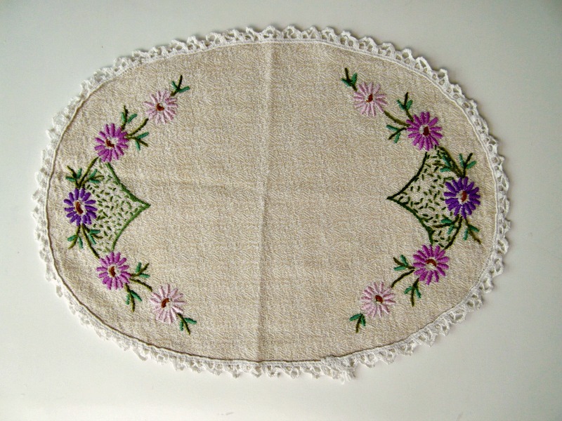As much as I like a good rummage, the word ‘antique’ comes with a pretty hefty price tag, so when I found some vintage tray covers in a vintage market, I was pretty pleased. I was even more pleased that they were only 50p each. Bargain!