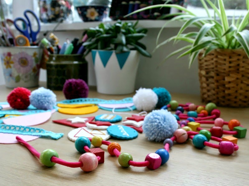 The one bonus of making so much last year was that everything was packed away once Christmas was over, so I can just pull it all out again. I had some great pom pom garlands and paper chains above the sofa, some cross-stitch bunting which I actually made about four years ago and then lots of little bits and pieces that we’ve picked up over the last few Christmases, so they’ll all be making an appearance again. This year I’ve cobbled together some simple felt-and-lace scallop bunting, a bead garland (which basically involved threading some beads onto illuminous pink bungee cord) and err, way too many pompoms to be useful. I’m definitely, definitely not going to be staying up until the small hours making FIMO shapes and cross-stitching Christmas cards, weeping into my embroidery silks and hollering, ‘humbug!” every five minutes.