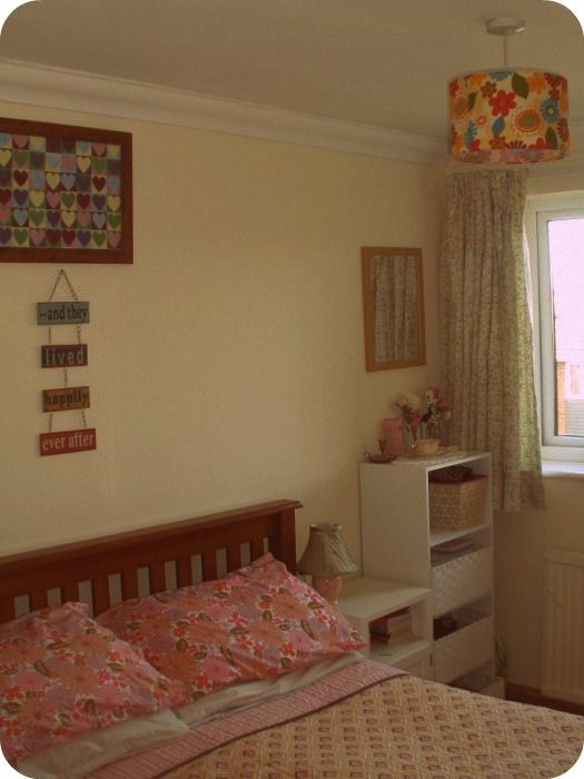 My Mum used to have those curtains too! Their whole room was kitted out in it; bedspread, wallpaper and everything. total overkill, but seeing it again now I can appreciate what a pretty pattern it is. I wonder if Mum still has them lurking in her airing cupboard…Also, I LOVE that patchwork mirror! Did you buy it?