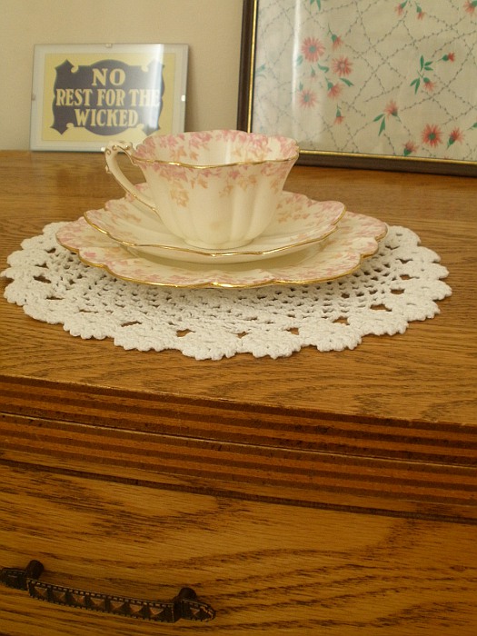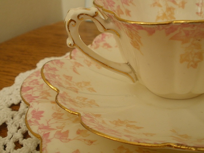 My mother-in-law, who knows how fond I am of old kitchenware, tins, jars, pots and cups, recently surprised me with a beautiful gift – a vintage tea-set that she’d had in the family for years. She said she could remember it being at her Grandmothers house when she was a little girl, but had no idea how old it was, or when it was made. After getting over the excitement of just being handed something so beautiful, I did a little digging on the internet, and discovered a site which was dedicated to this particular pottery – I located the watermark on the bottom, and discovered that it was manufactured between 1882 and 1911. An actual, proper, legitimate antique tea-set – I do feel ever so lucky, regardless of what it’s worth today. I love passing it in the hallway, and wondering who drank from it, and more importantly, what they were wearing!