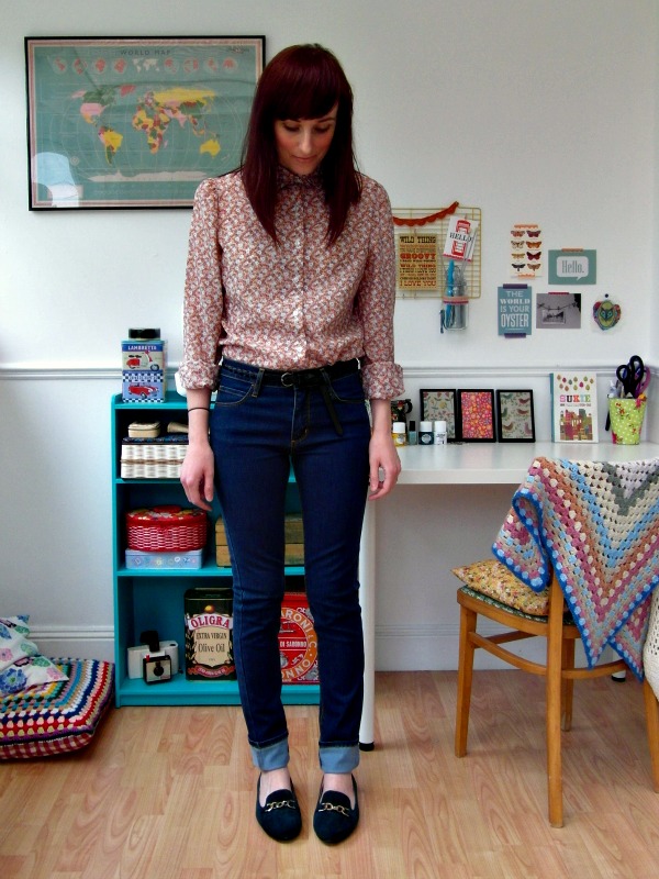 I spent a long time on the website, peering at the gazillion different shades, fits and styles, and pondering over what was most important to me in my selection. I was hugely tempted by the pistachio sateen skinny jeans, and also the eye-popping colour of the aqua sateen skinnies, but in the end I decided to be sensible, and opt for a normal, bog-standard denim. These had to be multi-functional, after all. I’m pretty fussy when it comes to jeans, especially concerning the softness (my absolute pet-hate is stiff denim that feels like you’re wearing cardboard trousers), so I emailed to ask which style was the most comfortable and had the most give to it – Natasha replied almost straight away with loads of advice and tips, and I ended up opting for the Bamboo Denim skinny jeans – they’re mid waisted, which means no builders bottom effect when I bend over to retrieve a pen / crochet hook / errant child, and it also means that they can be worn higher up, with tops tucked in, or lower down for a more relaxed look (i.e. when you’ve eaten too much cake, and you’re wearing your husbands t-shirt to hide the evidence).